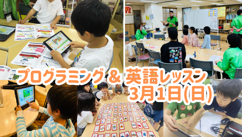 【3/1開催】「遊び」が「学び」に変わる120分!はじめてのプログラミング&英語体験会