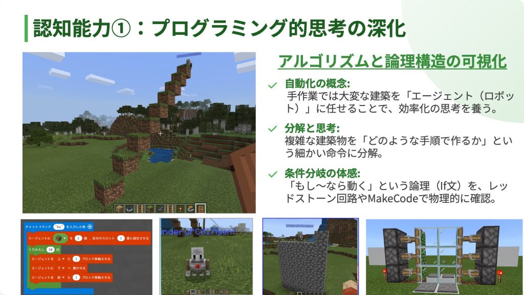 【概要】教育版マインクラフトのプログラミング機能を活用し問題解決能力を育みます。