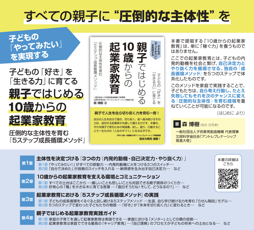 この度、一般社団法人子供教育創造機構 代表理事の森が、文部科学省「アントレプレナーシップ推進大使」 に就任いたしました。